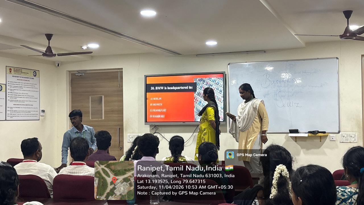 The DEPARTMENT OF MANAGEMENT STUDIES conducted CLUB ACTIVITY on 11.04.2026 PROVIDED experiences for the students to learning through BUSINESS QUIZ.