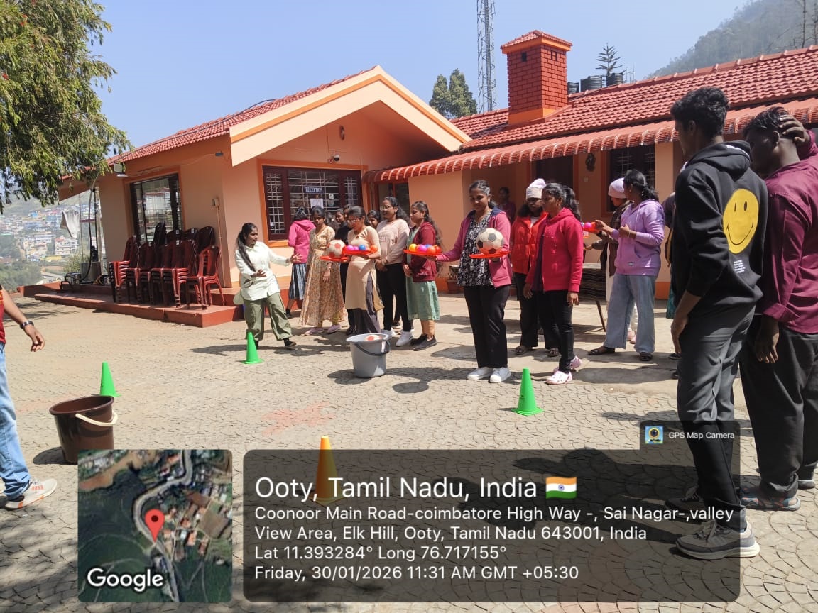 The DEPARTMENT OF MANAGEMENT STUDIES organized a four-days “OUTBOUND TRAINING PROGRAM” for “OOTY”during 28.01.2026 to 31.01.2026. Adventure-based and experiential learning activities such as trekking, team-building games, trust-building exercises, problem-solving tasks, rope activities, and group challenges.