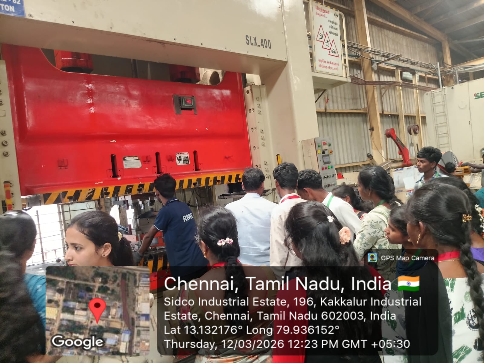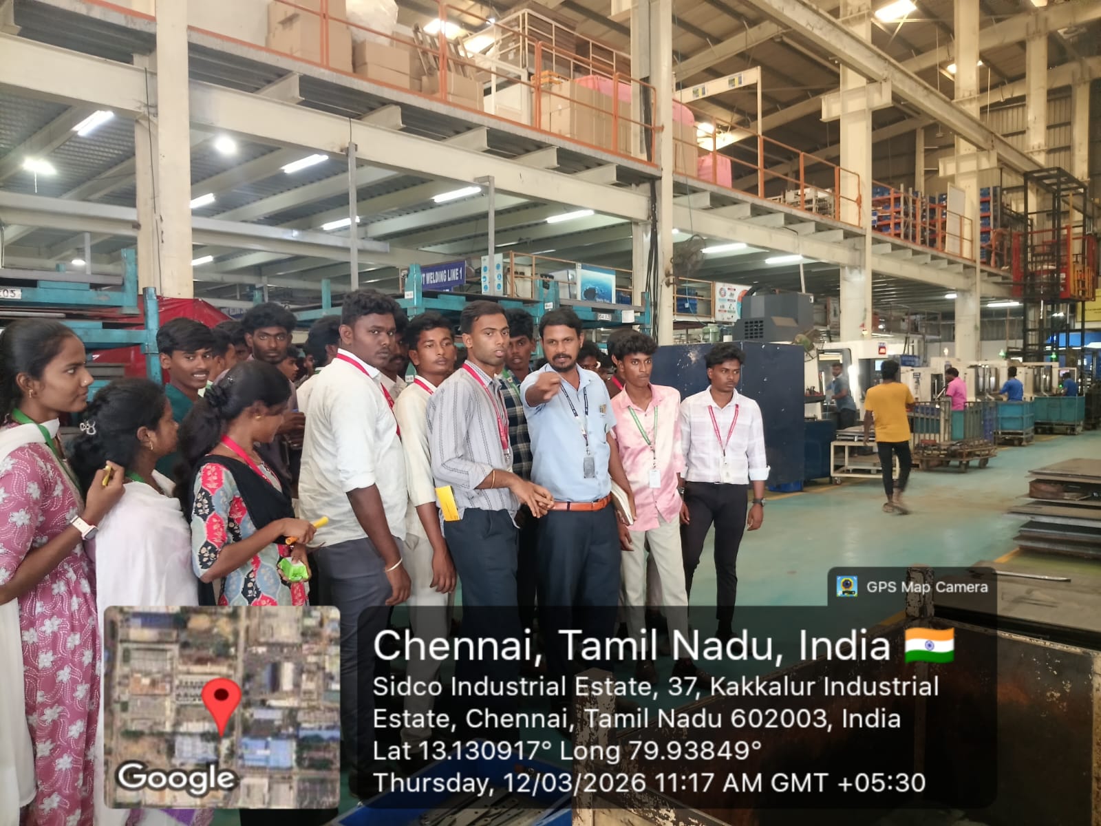 EEE Department organized Industrial Visit for II and III year EEE students to S.P. Engineers Autotech India Private Limited, Kakkalur Industrial Estate, Tiruvallur on 12.03.2026 to bridge the gap between theoretical knowledge and industrial practice and to enhance student’s technical knowledge, teamwork and professional awareness through real industrial exposure.